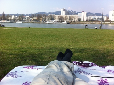 Ich setze mich mit einer Decke an die Donau und beobachte wie die Menschen vorbeiziehen.