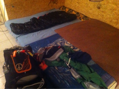 Als Schlafplatz dient mir heut Nacht der Keller wo ich wie eine Prinzessin auf dicken Matratzen in meinem warmen Schlafsack liege.