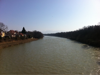 Die Salzach ist der Grenzfluss zw. Deutschland und Österreich. Es ist Komisch an der Grenze langzulaufen.