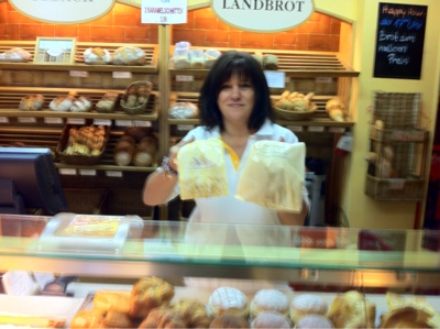 Da ich heut außer dem Frühstück noch nichts zu Essen hatte schau ich noch in der Bäckerei vorbei welche auf dem Weg liegt. Die Bäckerin meint das so ein fleißiger Wandersmann wie ich belohnt werden muss und so bekomme ich einen Apfelstrudel und ein frisches Landbrot.